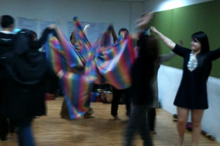 ![]() Teacher workshops can also be quite physical, depending on the needs of the group. Freeing the body helps to free the creative mind. |